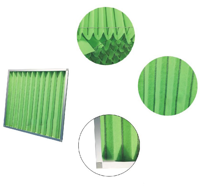 濾料采用優質聚酯合成纖維,可多次清洗再利用,使用壽命長,蓬松漸密的纖維結構,保證了較高的聚塵率及較大的容塵量,有效延長其后端中效過濾器的使用壽命。